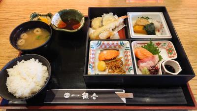 刺身、天ぷら、煮物、焼き魚に御飯、味噌汁、お新香と一般的な松花堂弁当だけど、非常にバランスよい組み合わせで、どれもとても美味しかったです。