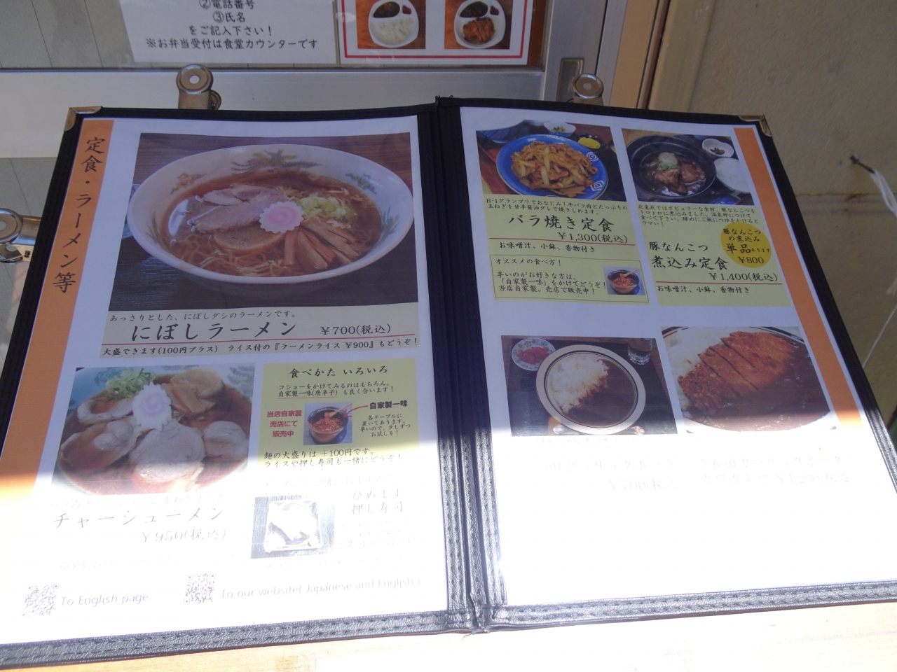 ひめます刺身定食をはじめ、いろいろとメニューがある中で、煮干しラーメンを注文しました。