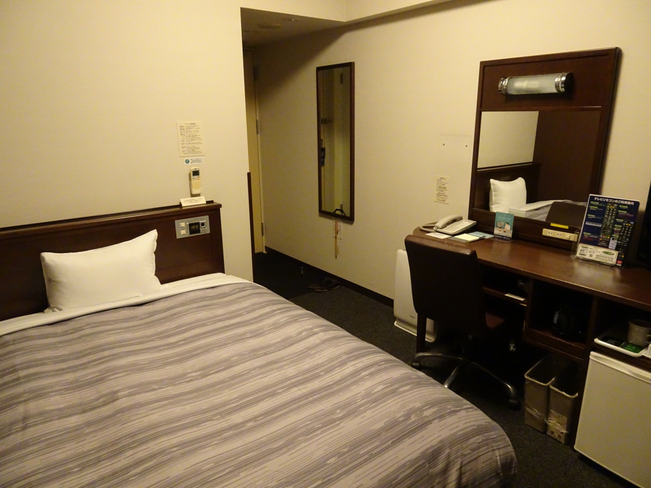 部屋はシングルだけど、ベッドがダブルサイズでした。