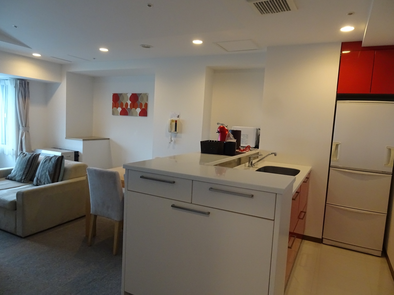 また部屋はびっくりするほど広く、玄関・トイレ、リビング&キッチン、寝室、そして洗面・浴室と、ドラム式洗濯機を備えたまさに長期滞在型のリゾートホテル。