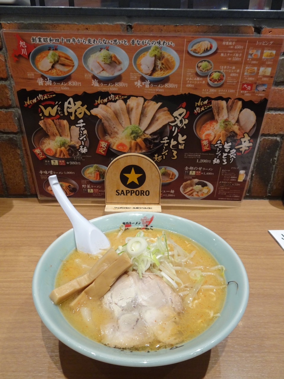 新千歳空港内に道内の人気ラーメン店がひしめくラーメン道場に、旭川ラーメンのお店があったので、入ってみました。