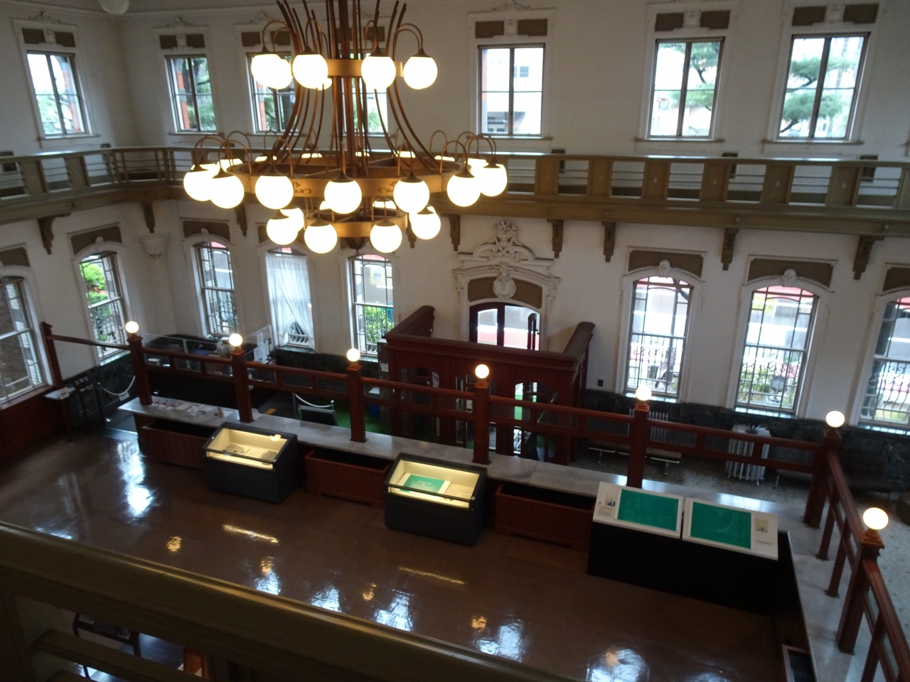 奥には、素敵な暖炉が置かれた内装の頭取の部屋、そして2階に上がると銀行のフロアが真下に見ることができます。