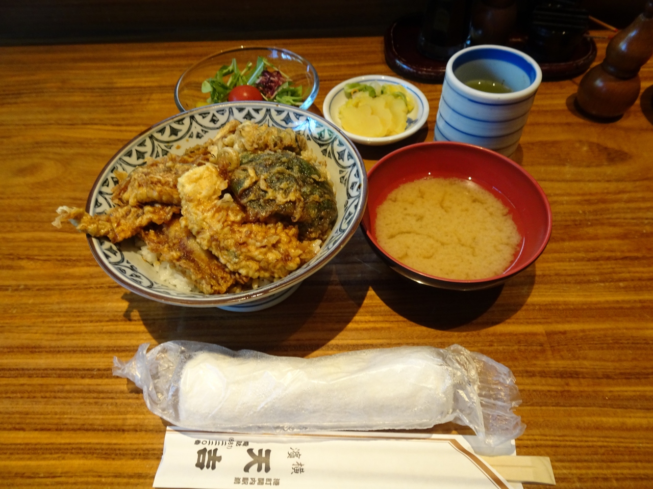 サクサクっとした天ぷらではなく、どちらかというとダシに付け込んだ濃いめの味付けの天ぷら丼です。