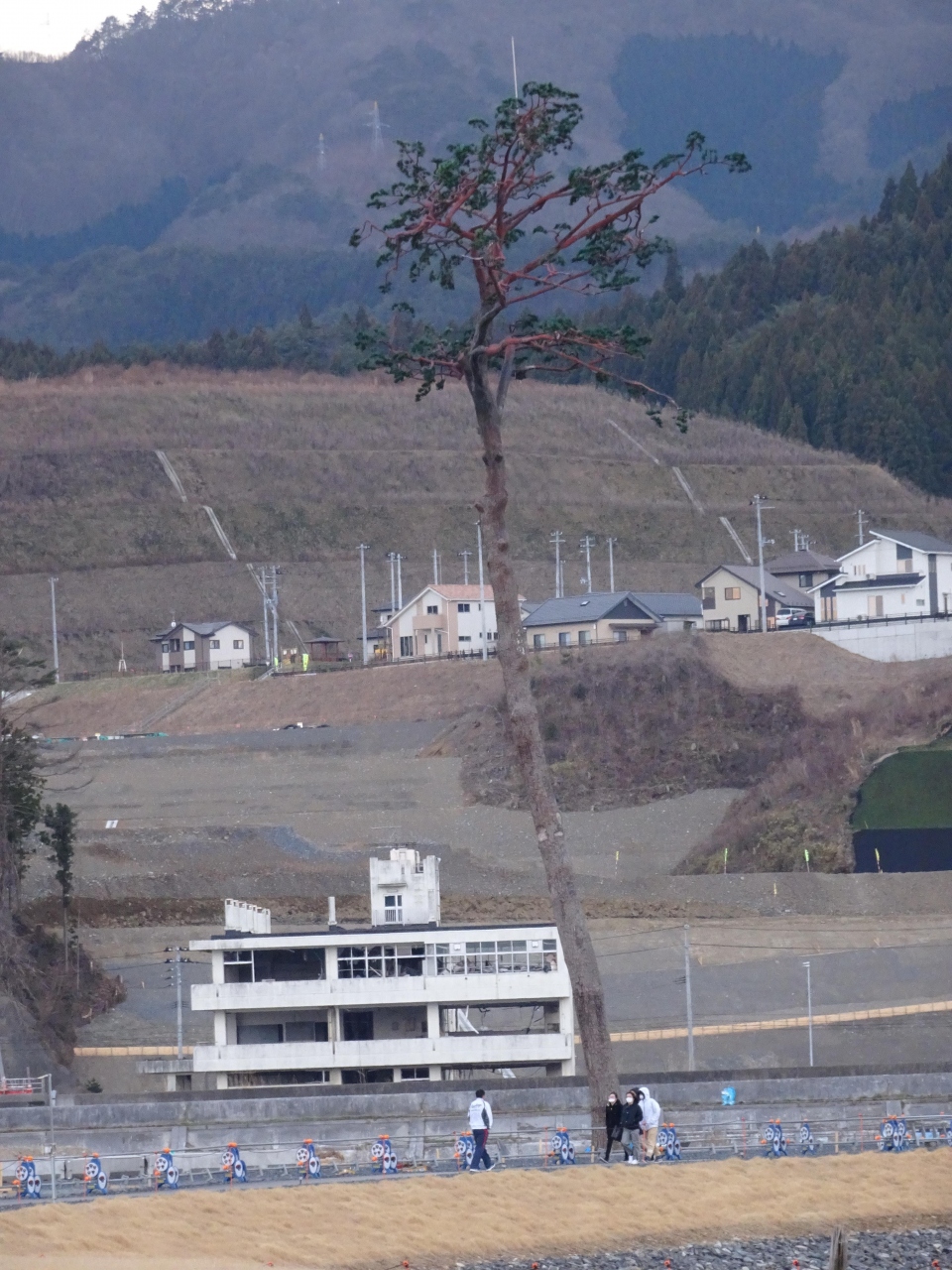 周りの建物がことごとく流されてしまったのに、こんな細い木が絶えたのは、まさに奇跡です。