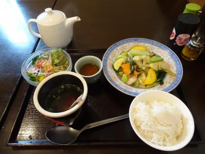 ランチメニューのメインは毎月変わりますが、この時のAセットのメインは、小エビと野菜の塩炒め。