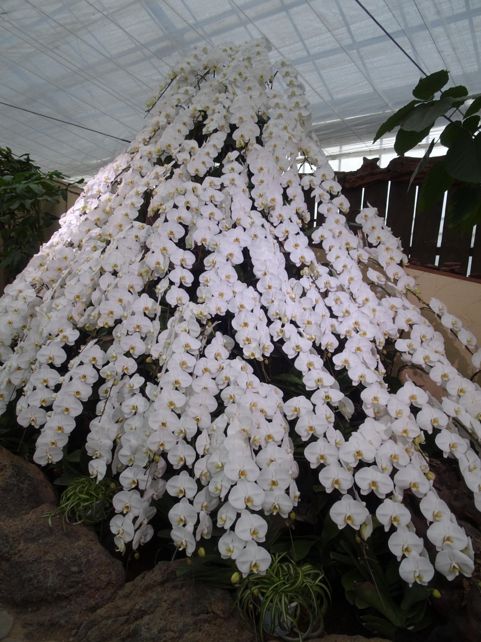 富士山の形にデコレートされた見事な胡蝶蘭、色鮮やかなポインセチアや色とりどりのシクラメン、他にも大きなザボンや菜の花、そして薬草となるハーブの数々。