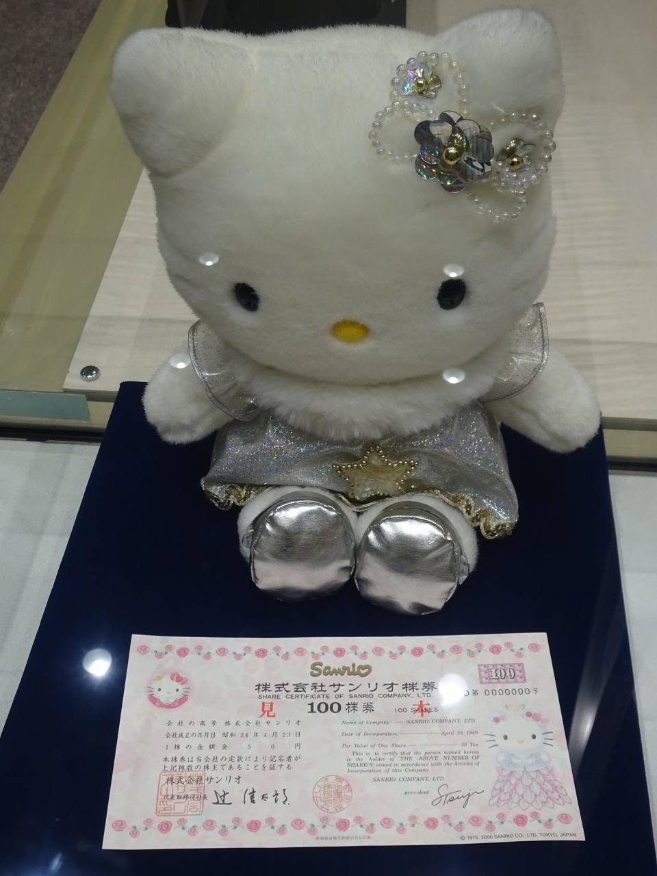 また1階には、証券史料ホールがあり、社名の特徴を表した主な会社の株券が展示されていて、特に可愛らしいキティちゃんの株券には、思わず目が止まりました。- 旅行時期