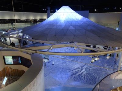 2階に上がると、1階の展示の頭上を覆う富士山が 目に飛び込んできます。