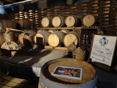 貯蔵所に入ると、たくさんの樽とワインのほのかな匂いがしました。
