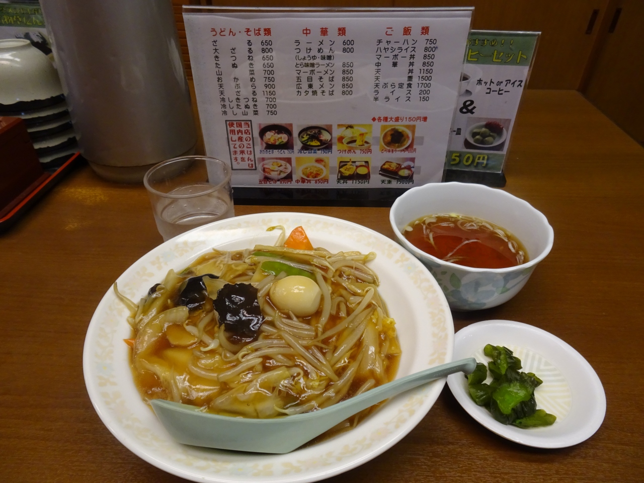 メニューは、和食に中華、そしてスイーツである草団子のセットがあります。