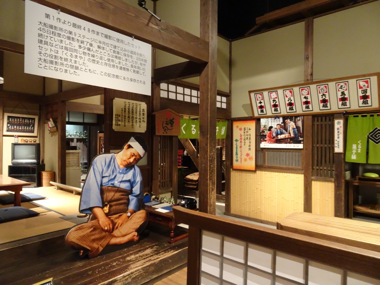 中に入ると、映画スタッフの動きを展示したコーナー、そして一番、馴染みのある「とらや」や印刷所のセットを再現したコーナー、昭和の時代に利用していた数々の小道具が展示されています。