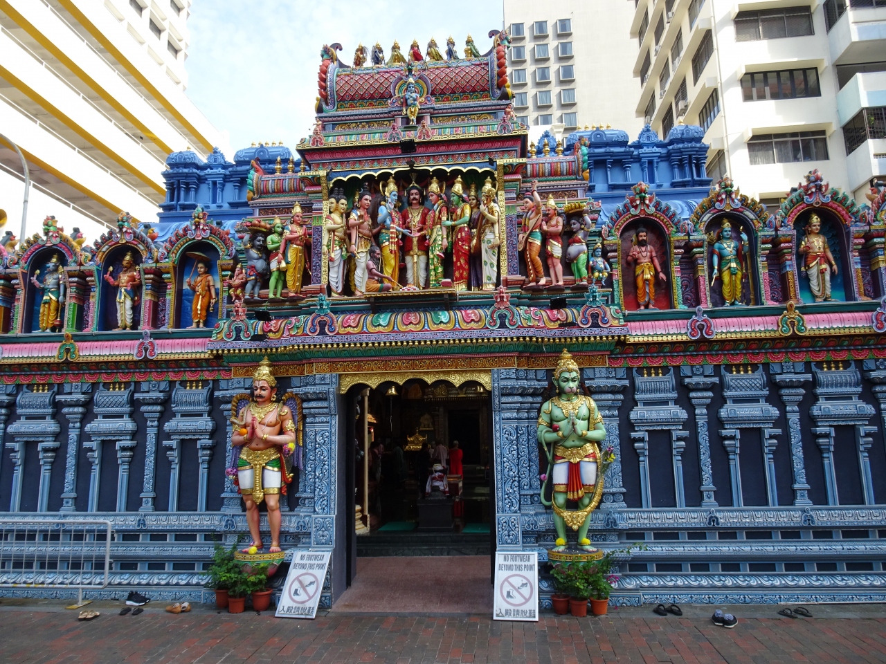 入口前で靴を脱いで中に入ると、外もそうですが、中の本堂も天井をはじめ、極彩色の艶やかな色が目に入ってきます。