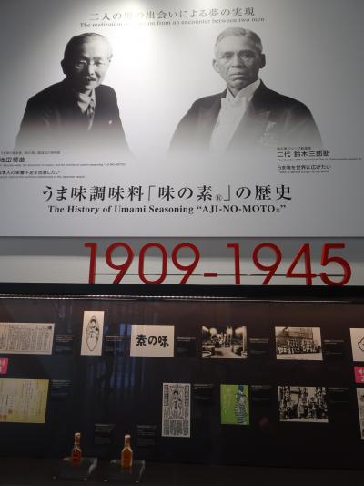 味の素コースを選ぶと、味の素の原材料や歴史の展示を見て、バスで工場見学に出発です。