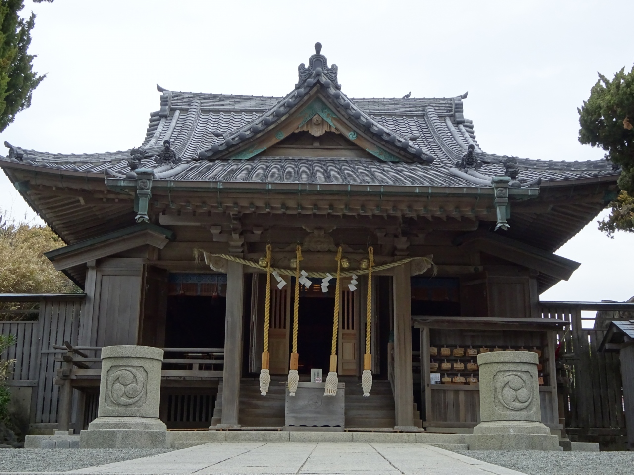 森戸海岸の断崖に建つ神社で、縁結びの神様で有名です。