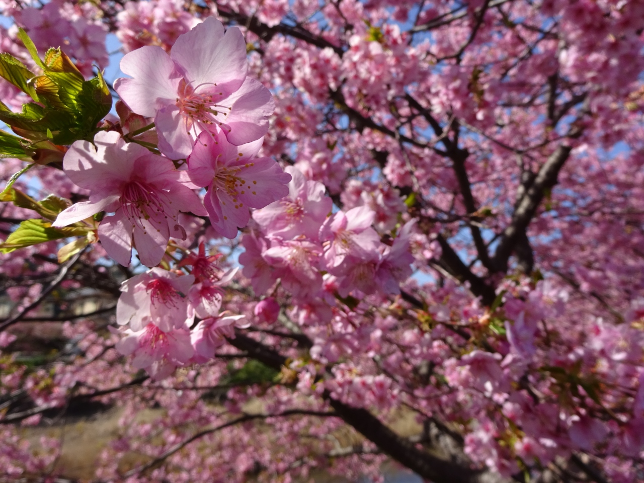菜の花ロードと呼ばれる川べりに咲き誇る河津桜は、やはり奇麗です。