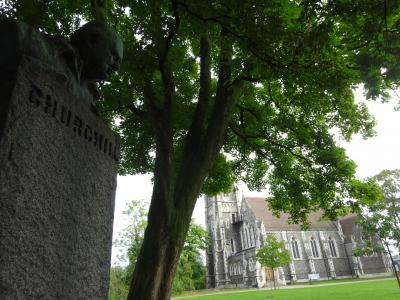 そこに 茂みの中でひっそりと建つのが この公園の名前のもとになったチャーチル英国元首相の像。
