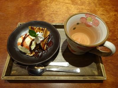 そして、最後はデザート(ワッフルとアイス)と飲み物が付きます。