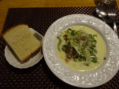 また最初に出されたスープは オニオンスープで、コクがあって これまた美味。
