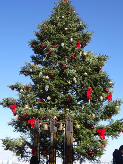 クリスマスシーズンになると、バックに大きなクリスマスツリーが設置され、ツリーとともに 鐘の前で写真を撮る人の列が絶えません。