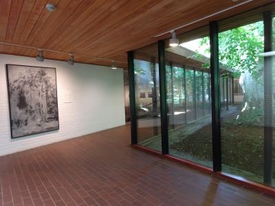 エントランスから屋内の絵画や彫刻作品を見るにつれ、ガラス張りの廊下から差し込む光がとても明るく、しかも途中、その廊下から外に出て、庭園におかれた美術作品も鑑賞できます。