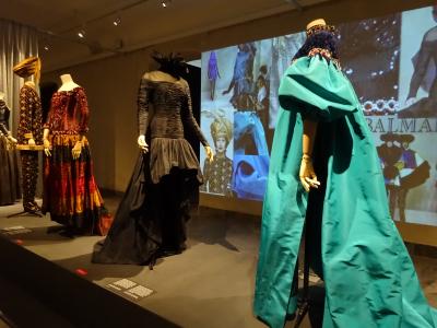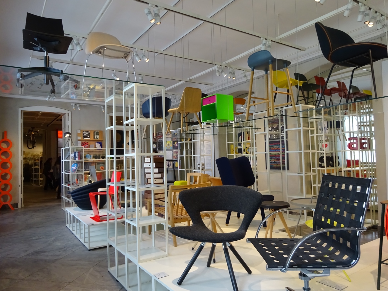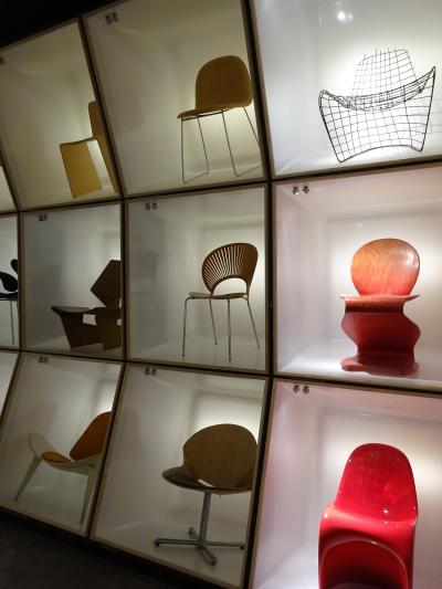 椅子やパーティードレスなど、カラフルな色遣いで、独創的な作品が展示されています。