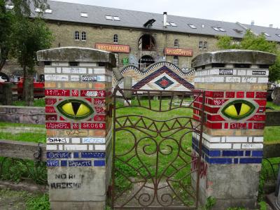まさに廃屋なのですが、その壁には原色を使って アートな世界が描かれています。