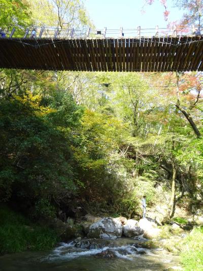 またすぐそばの吊橋を渡って、遊歩道を歩いていけば、生瀬の滝という袋田の滝のミニ版も見ることができます。