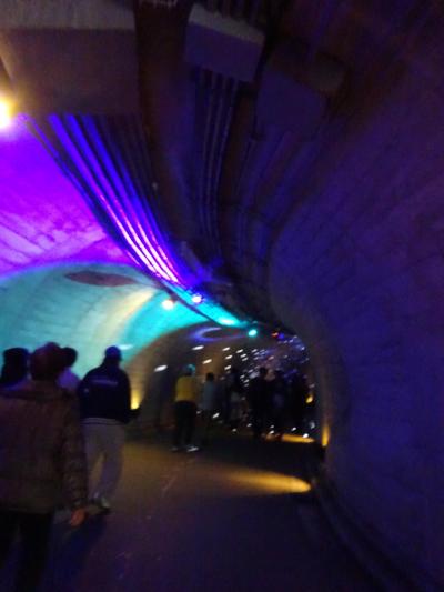 入口から長いトンネルを歩いていきますが、間もなく長蛇の列に出くわします。