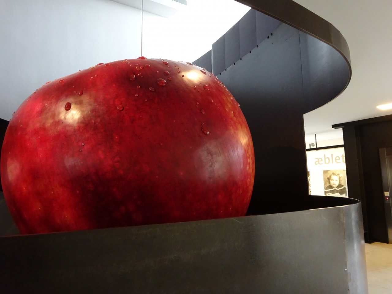 大きなリンゴのオブジェを見ながら、緩やかなスロープを上がっていきます。
