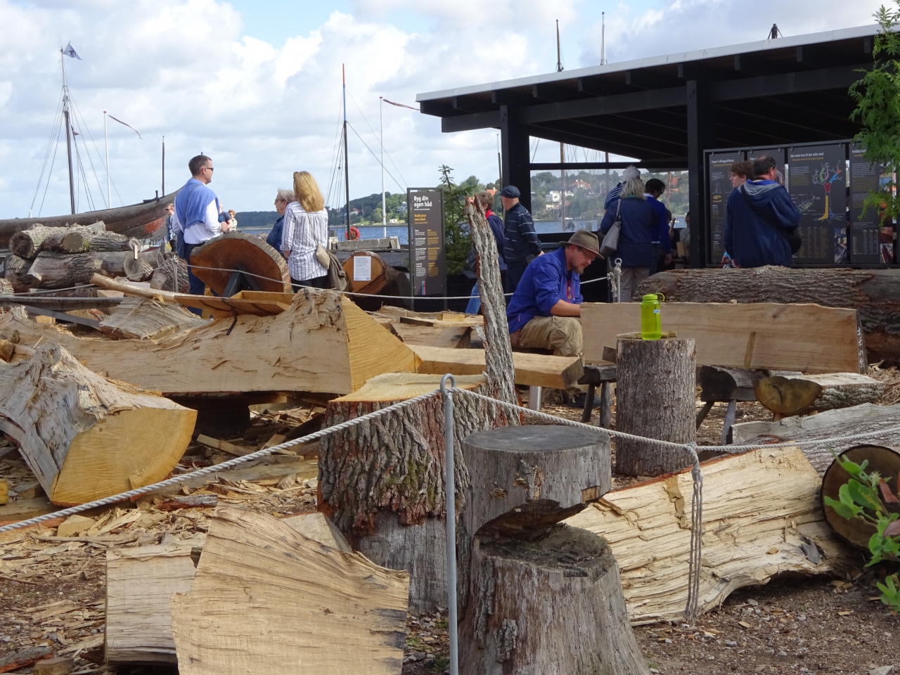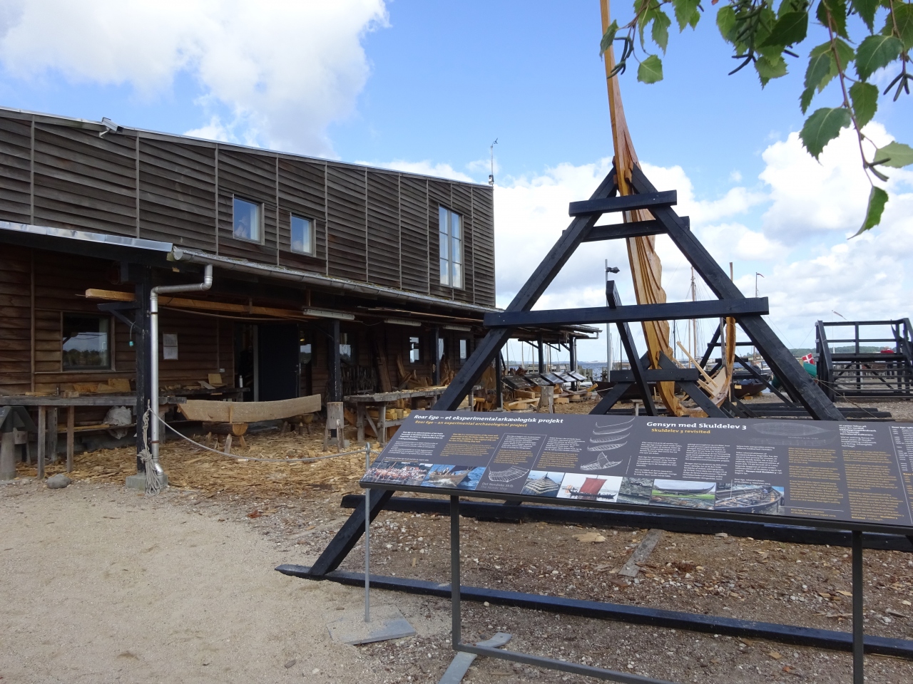 沿岸につながれた数隻のバイキング船を含む野外展示場、その奥に博物館があります。