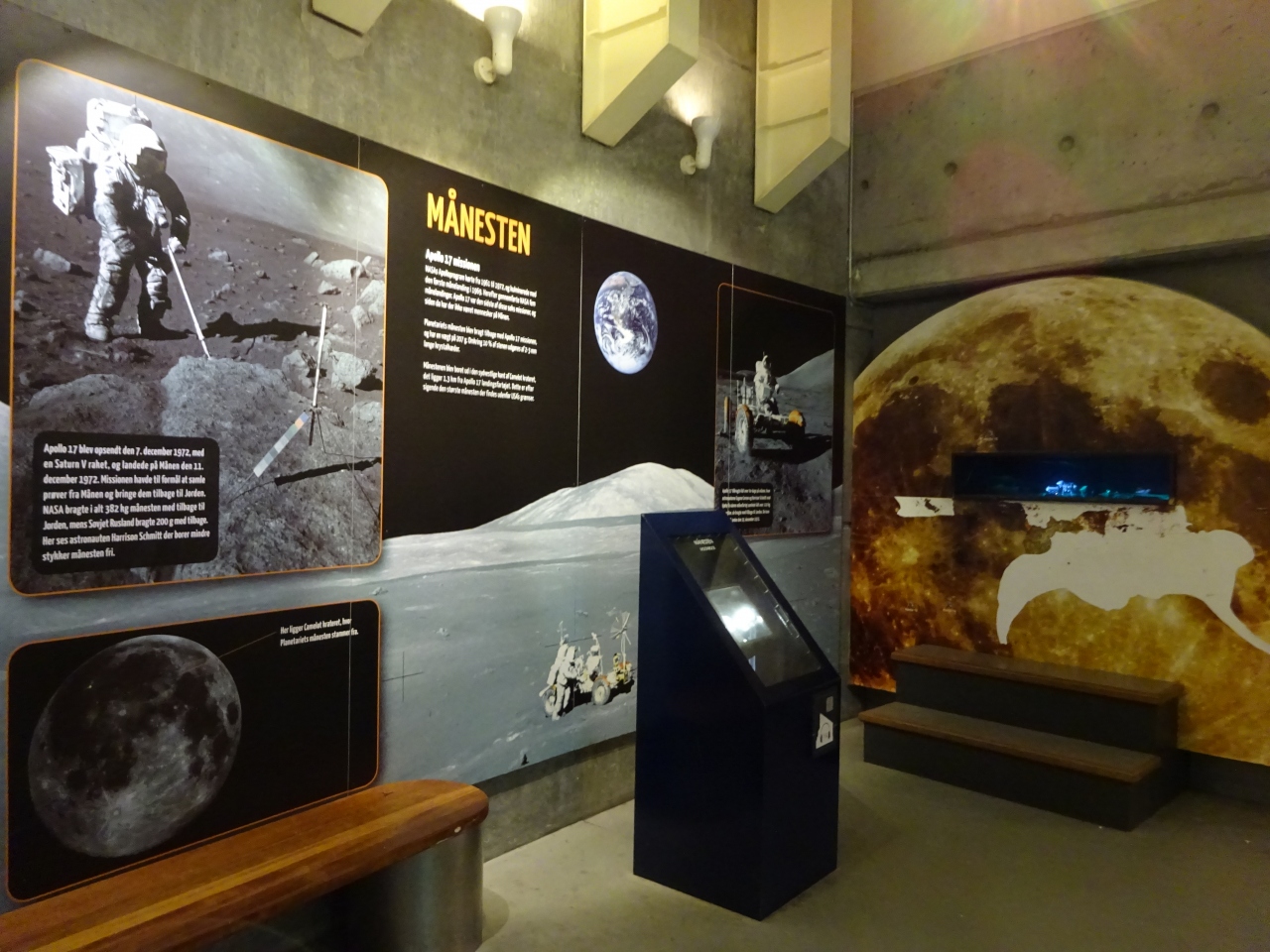 月の石(イミテーションだと思いますが)、月や火星・宇宙船などの模型、コントロールセンターの再現、その他 宇宙に関する歴史やしくみを パネルや写真で表しています。