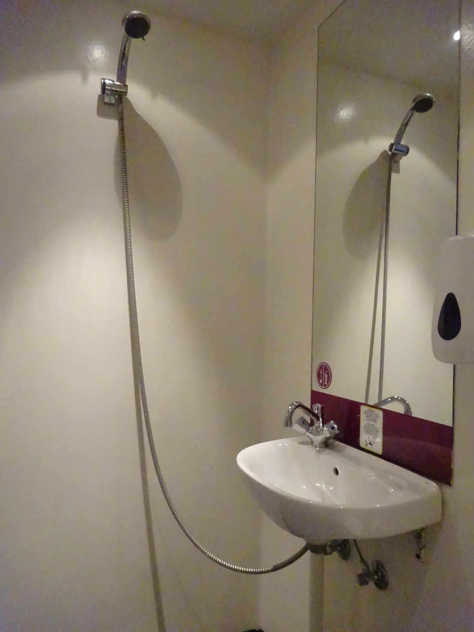 ベッドのサイズが小さく、シャワールームはあっても 区画のないトイレと一体型のタイプです。