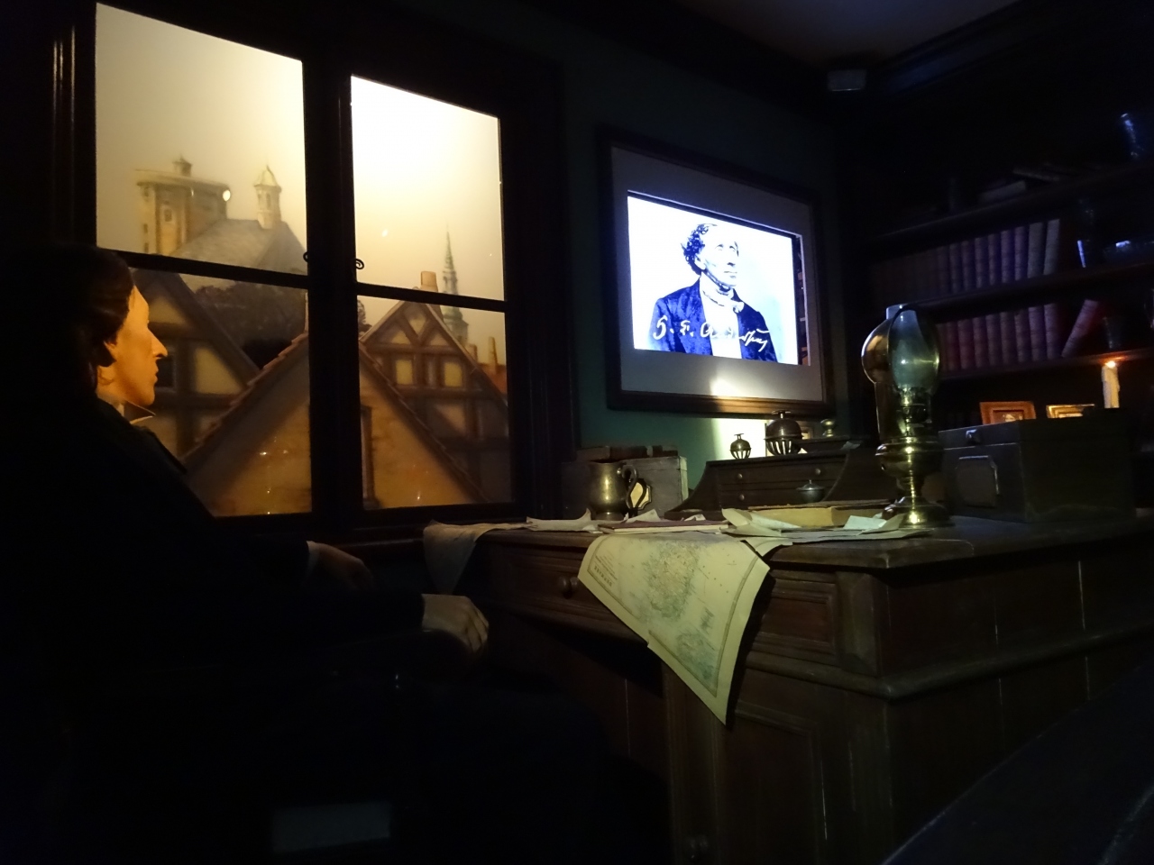 遊園地のアトラクションのように、細い路地を歩きながら アンデルセンの生い立ち・生活ぶりや作品の一場面に会える、まさに おとぎの世界。