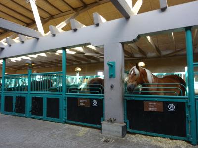 昔、荷車にビールを載せて運んでいたようで、時代風景を再現するために 本物の馬が数頭飼われていました。