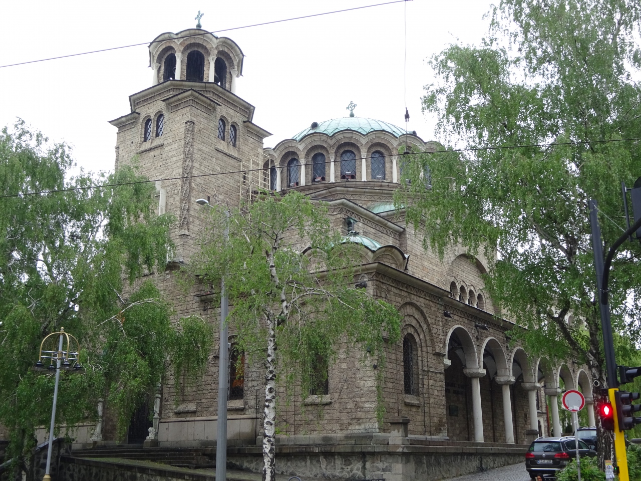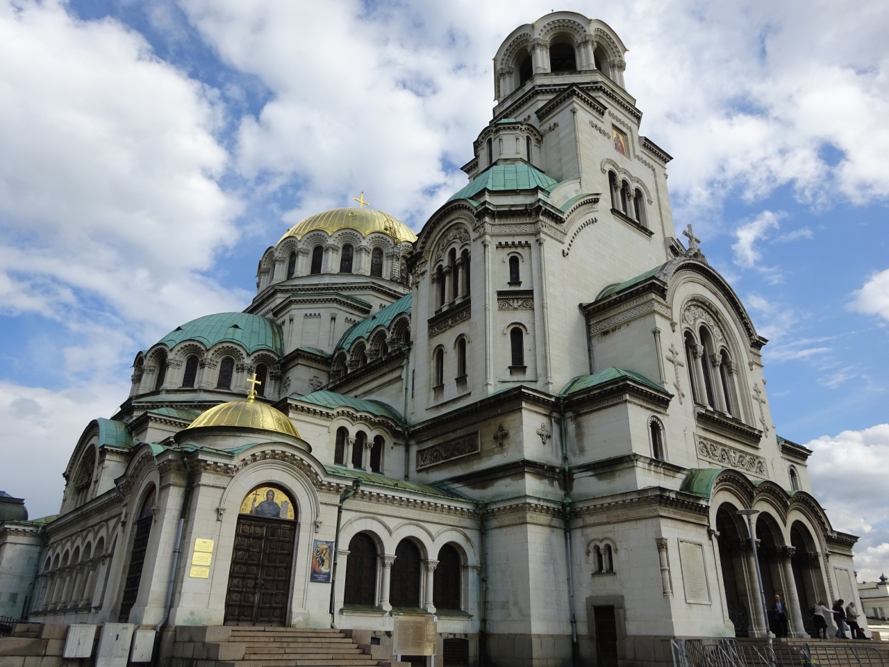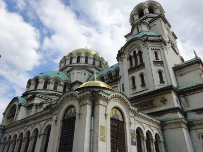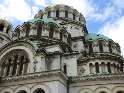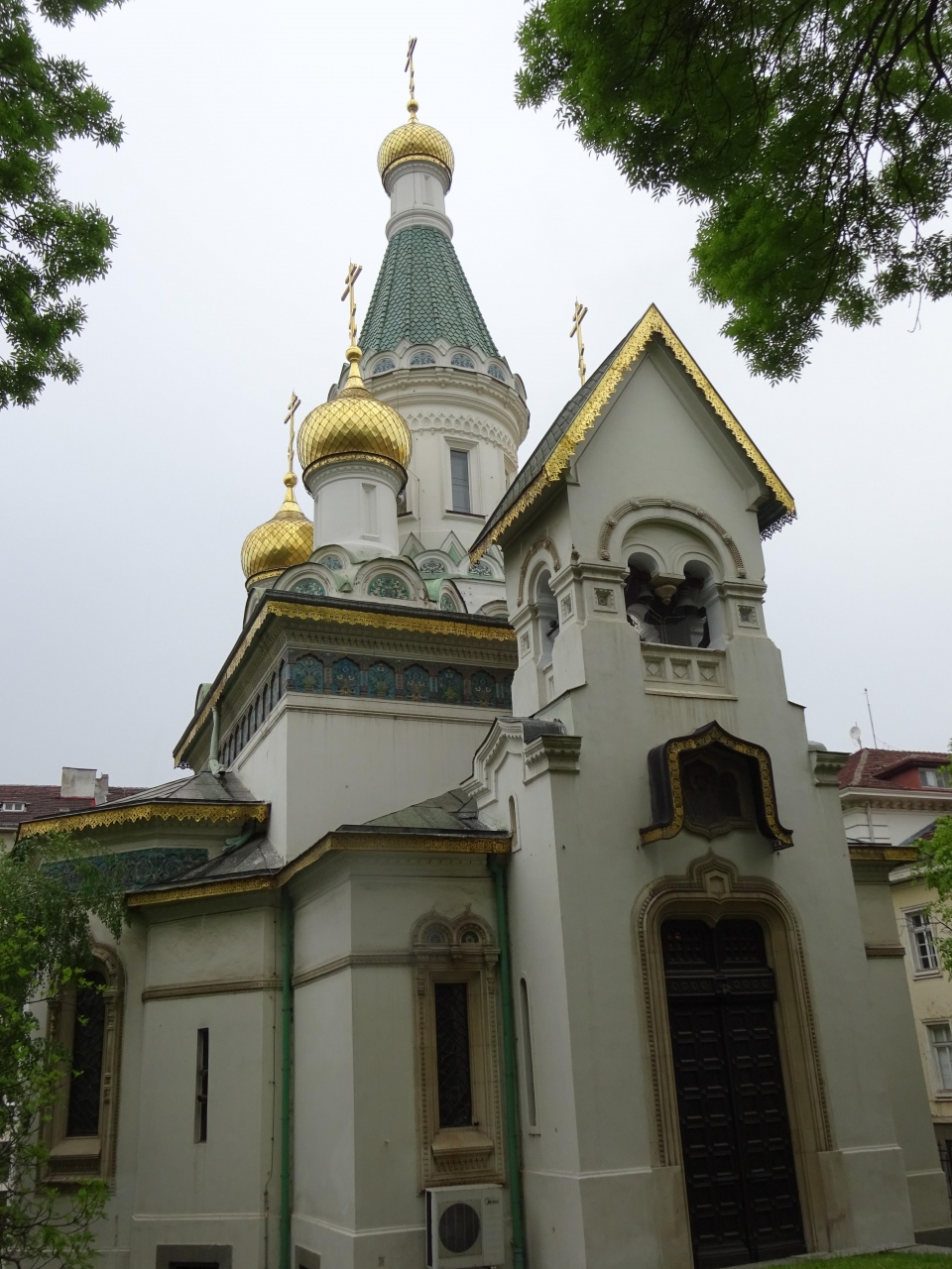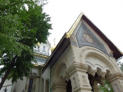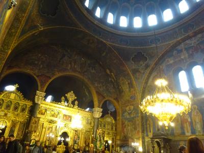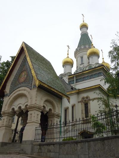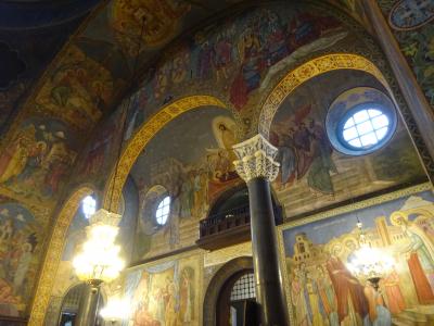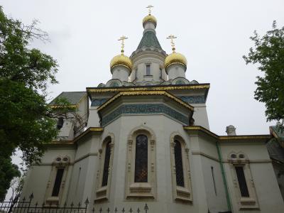 丸い大きな黄金の屋根、その周りにも丸い緑の屋根が何層にも積み重ね・組まれている様は、何とも不思議で、面白い景観の ネオ・ビザンチン様式の寺院です。
