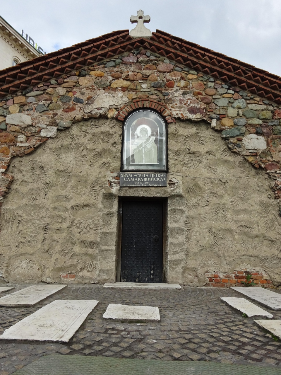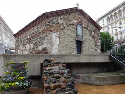大型デパート・ツム前の階下にある広場に、ひっそりと建つ聖ペトカ地下教会。