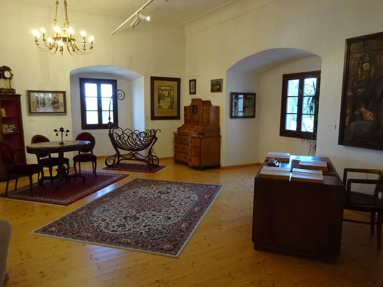 中は天井部分が高く、そこから吊り下げられた巨大なシャンデリアが目をひきます。
