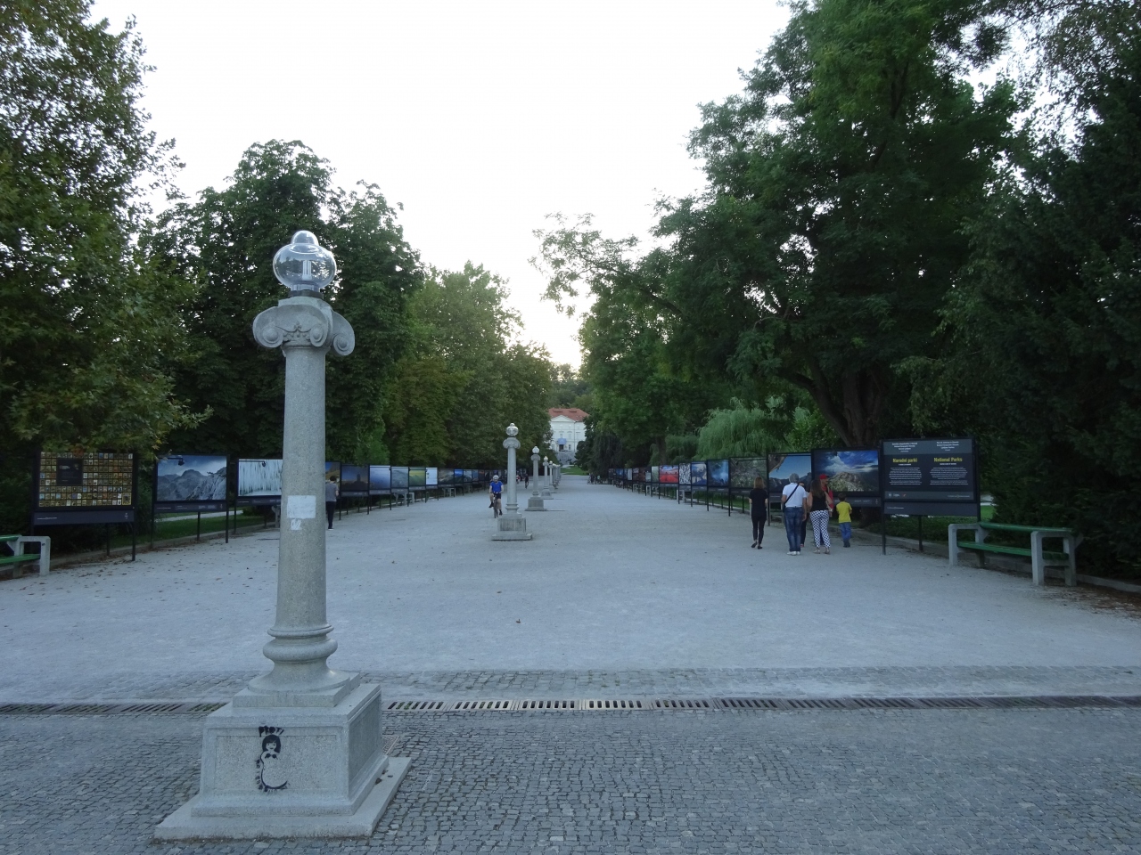 旧市街から 一直線上に見えるティヴォリ城を目指して、真っ直ぐ歩いて行きますが、途中、両側に リュブリャナの自然をとらえた写真パネルが飾られています。