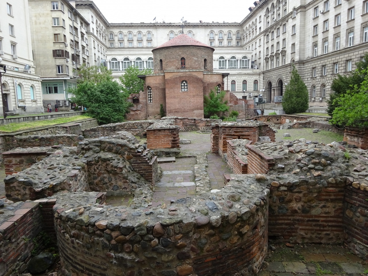 周囲には公園やじ セセッション様式の中央浴場、マリア・ルイザ通りを挟んだ向こう側には中央市場・シナゴークもあり、ソフィアの見どころが集まっている場所でもあります。