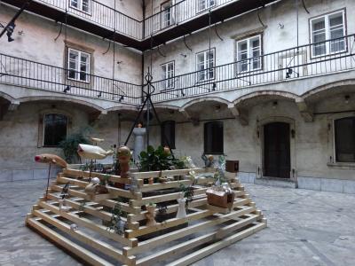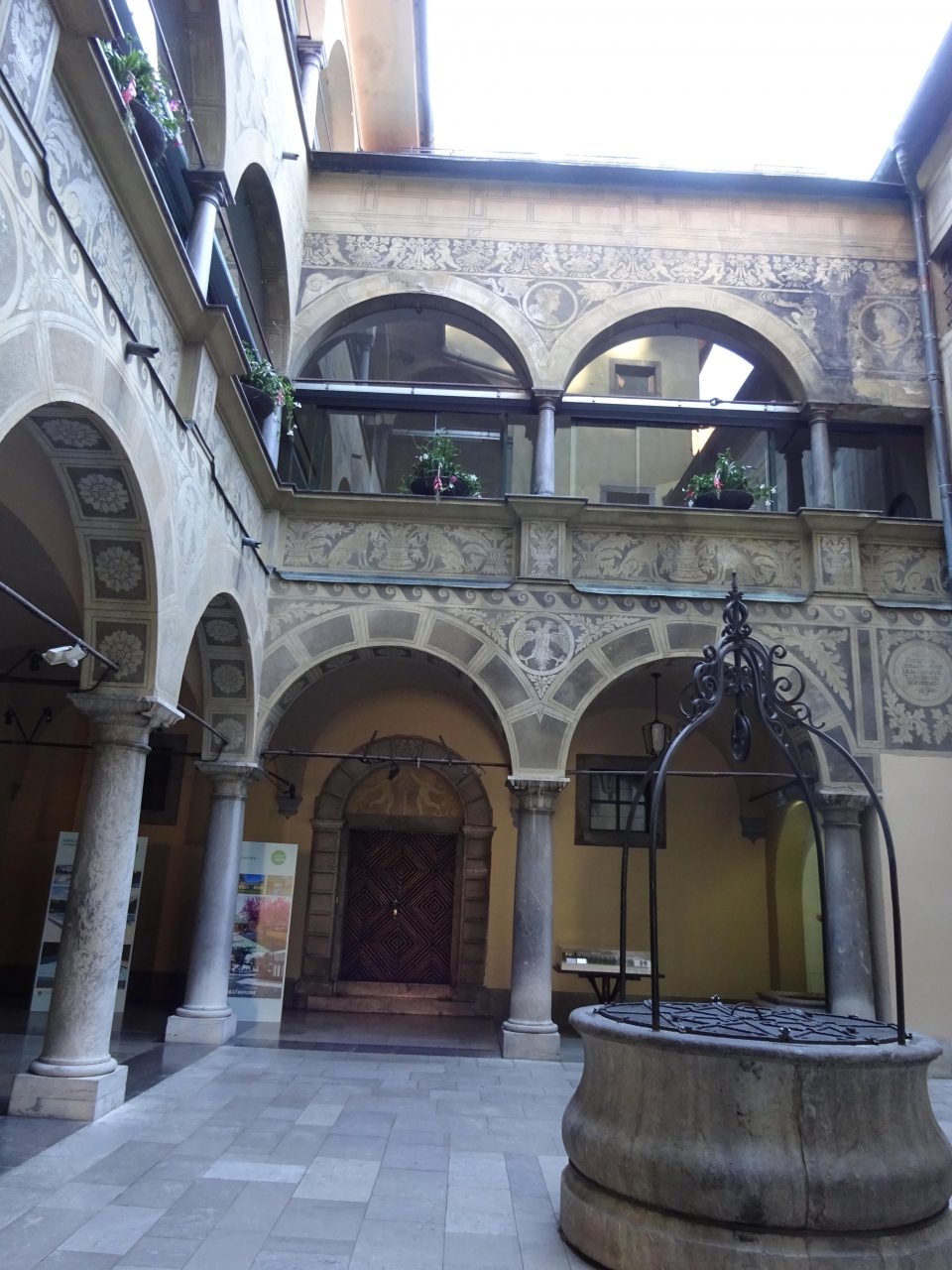 中央の天井から差し込む陽の光、壁にはリュブリャーナの地図、双頭の鷲、馬などの動物、植物が描かれていました。