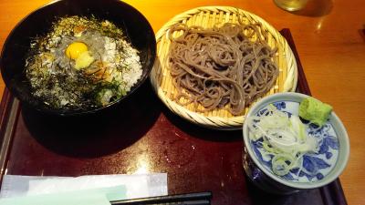 ランチメニューで、「3色しらす丼 と ごまそばのセット」を注文しました。