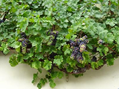 ブドウの木の根のまわりは、柵で覆われて近づくことはできませんが、そこから壁に広がるブドウは、人工的に綺麗に根をはっていました。