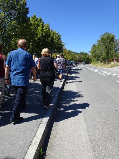 時間になると 集合の掛け声とともに、ガイドにしたがって 洞窟の入口まで山道を歩きます。