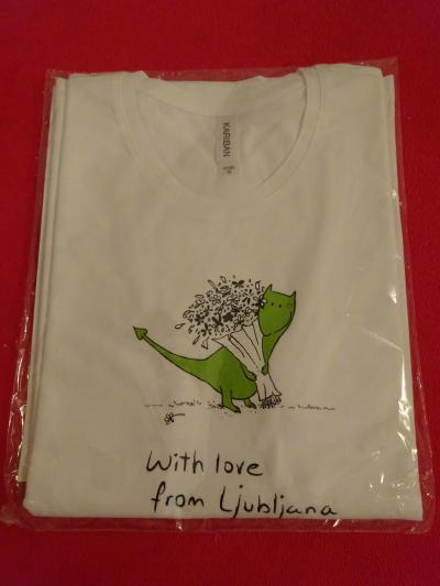 (市の象徴・竜をあしらった可愛いTシャツをお土産に購入しました)