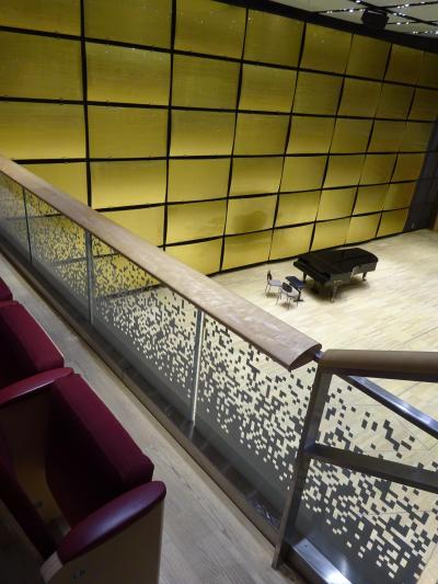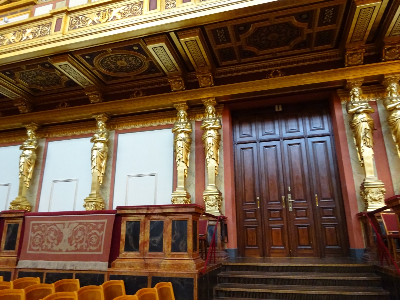 思ったより広い会場ではありませんが、壁から高い天井に至るまで一面に刻まれた黄金の彫刻、そして譜面台が置かれた楽団の舞台。