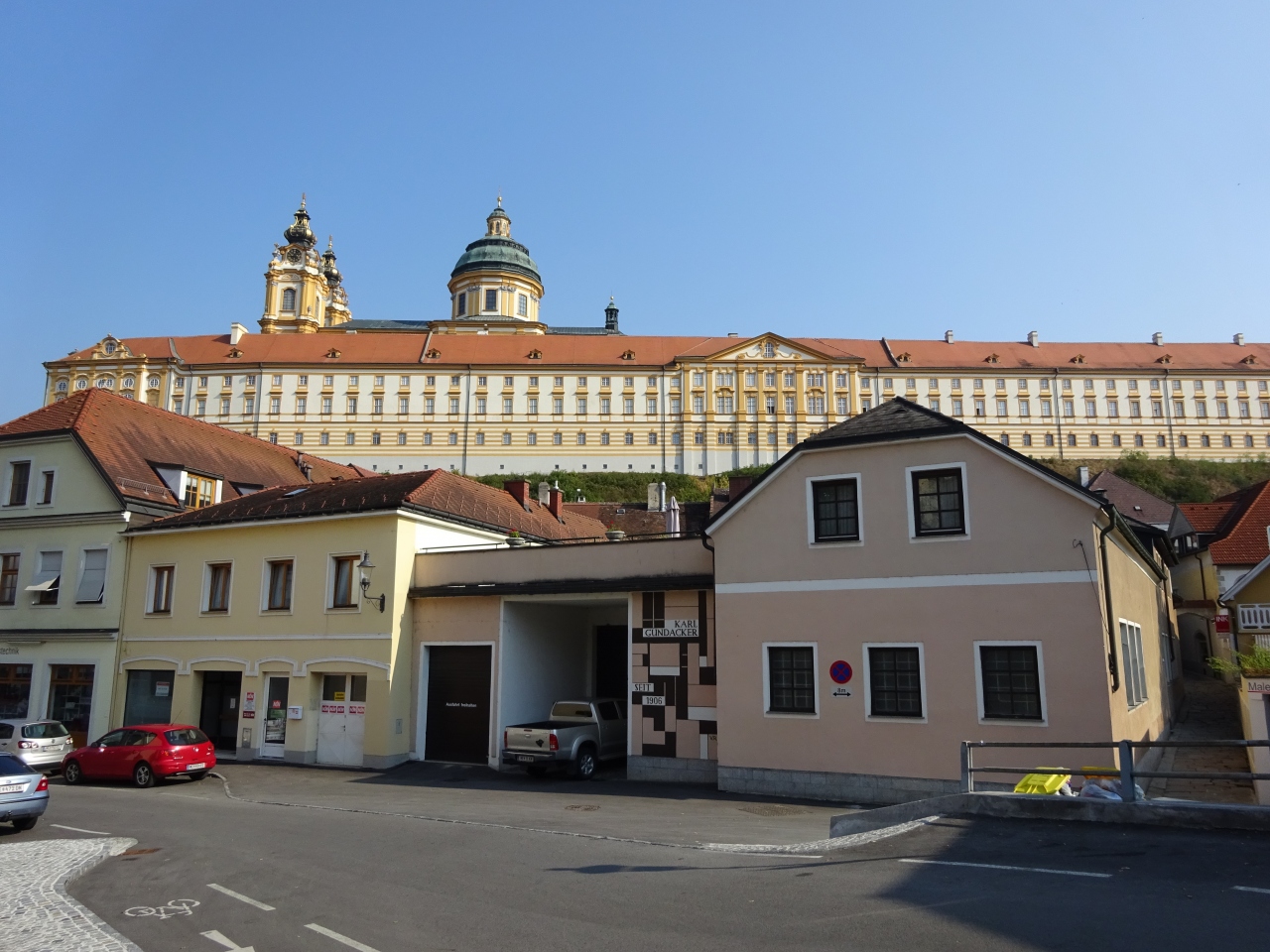 ウィーン西駅から ザングト・ペルテン経由で1時間弱、メルク駅を降りると、正面の丘の上に その雄姿が目に飛び込んできます。