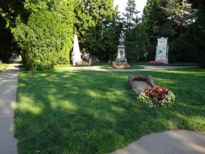 ここは、世界的有名な音楽家たちが眠る場所として あまりにも有名で、第2門を入り 中央に見えるカール・ルエガー教会に向かって左、第32A区にあります。