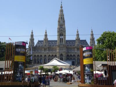 また市庁舎前の広場は夏の期間中、夜にフィルムコンサートが開催されています。