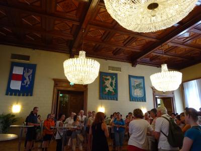 市庁舎の正面玄関を入り、中庭の左側の回廊で待っていると、専門ガイドが来てくれます (約1時間)。