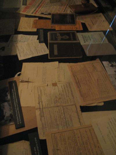 写真パネルは勿論、当時の衣類や身の回り品の数々、武器、捕虜を輸送した列車や収容所の部屋を再現したり、映画のテーマとなった ユダヤ人に発行されたビザも展示されていました。